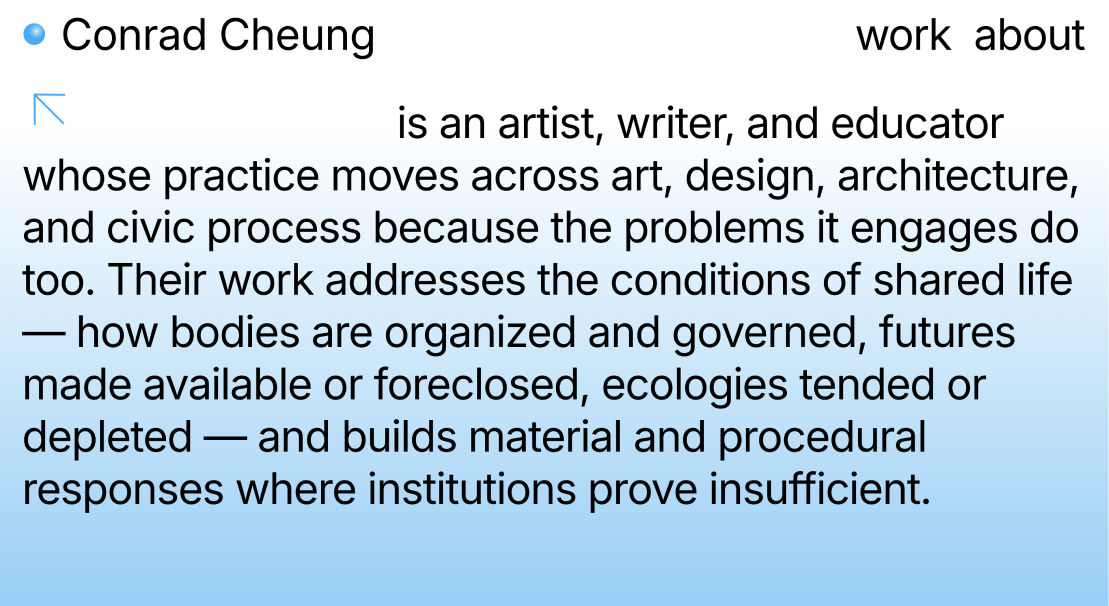 Conrad Cheung is an artist based in Ohio, United States. He wanted a personal portfolio website that not only displayed his work but also reflected his artistic identity. His existing website was built on Squarespace, but its limitations made it difficult to scale, customize, or create the unique experience he envisioned.